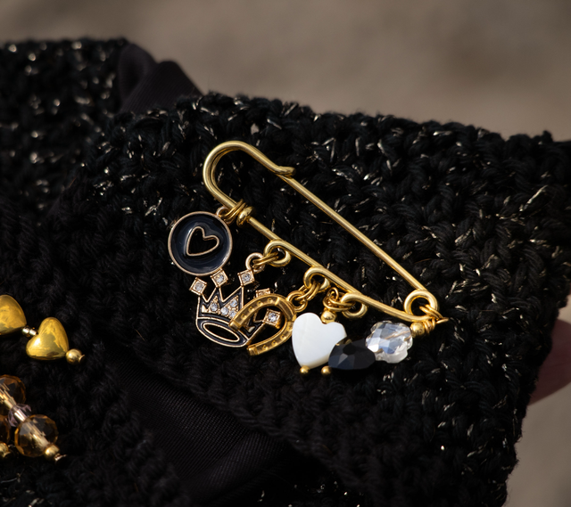 Votre broche DORÉ et ses CHARMS bonnet à clipser dessus.